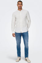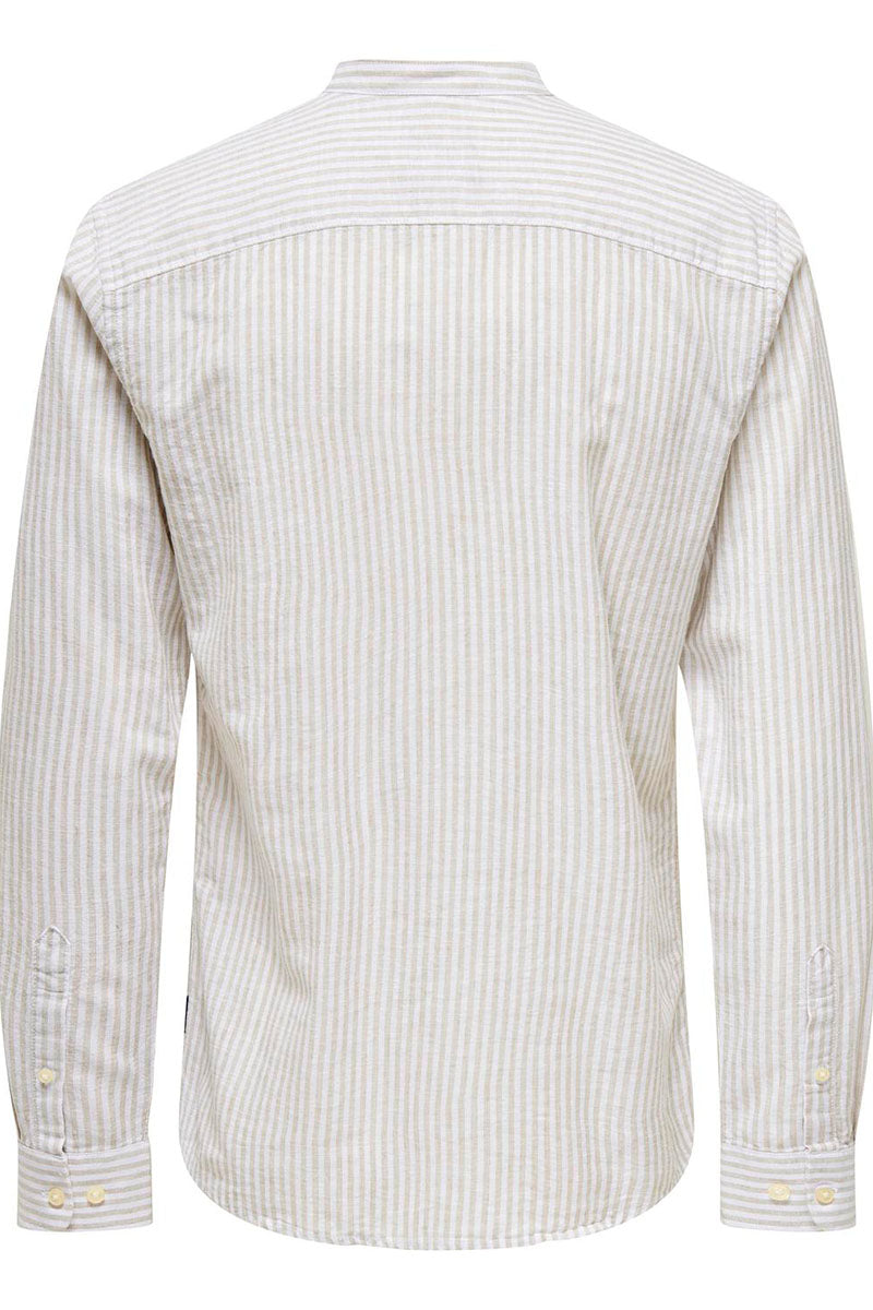 Caiden LS Mao Stripe Linen Shirt Chinchilla