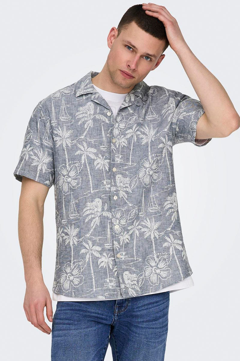 Caiden SS Regular Hawaii Linen Shirt Dress Blues