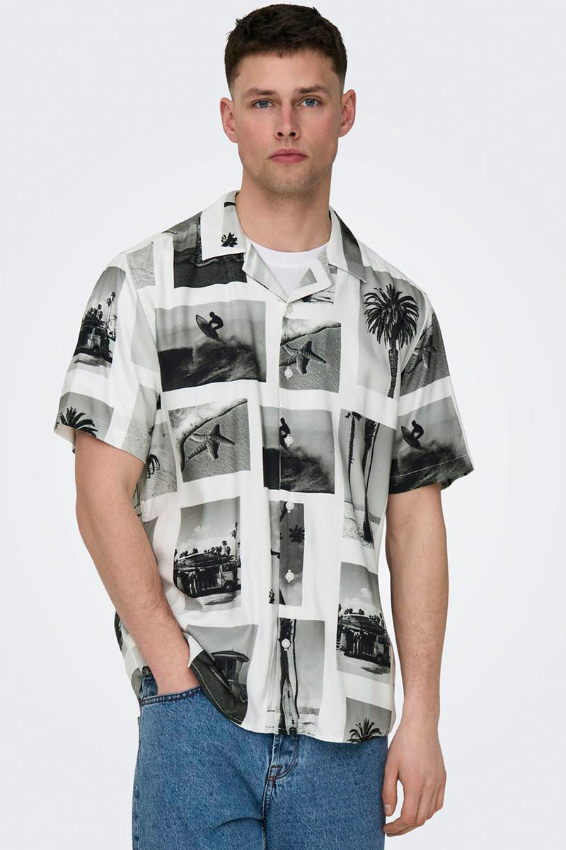 Nano Regular Cotton Viscose SS AOP Shirt Bright White