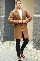 - Wykonana z ciężkiej tkaniny z mieszanki wełny.