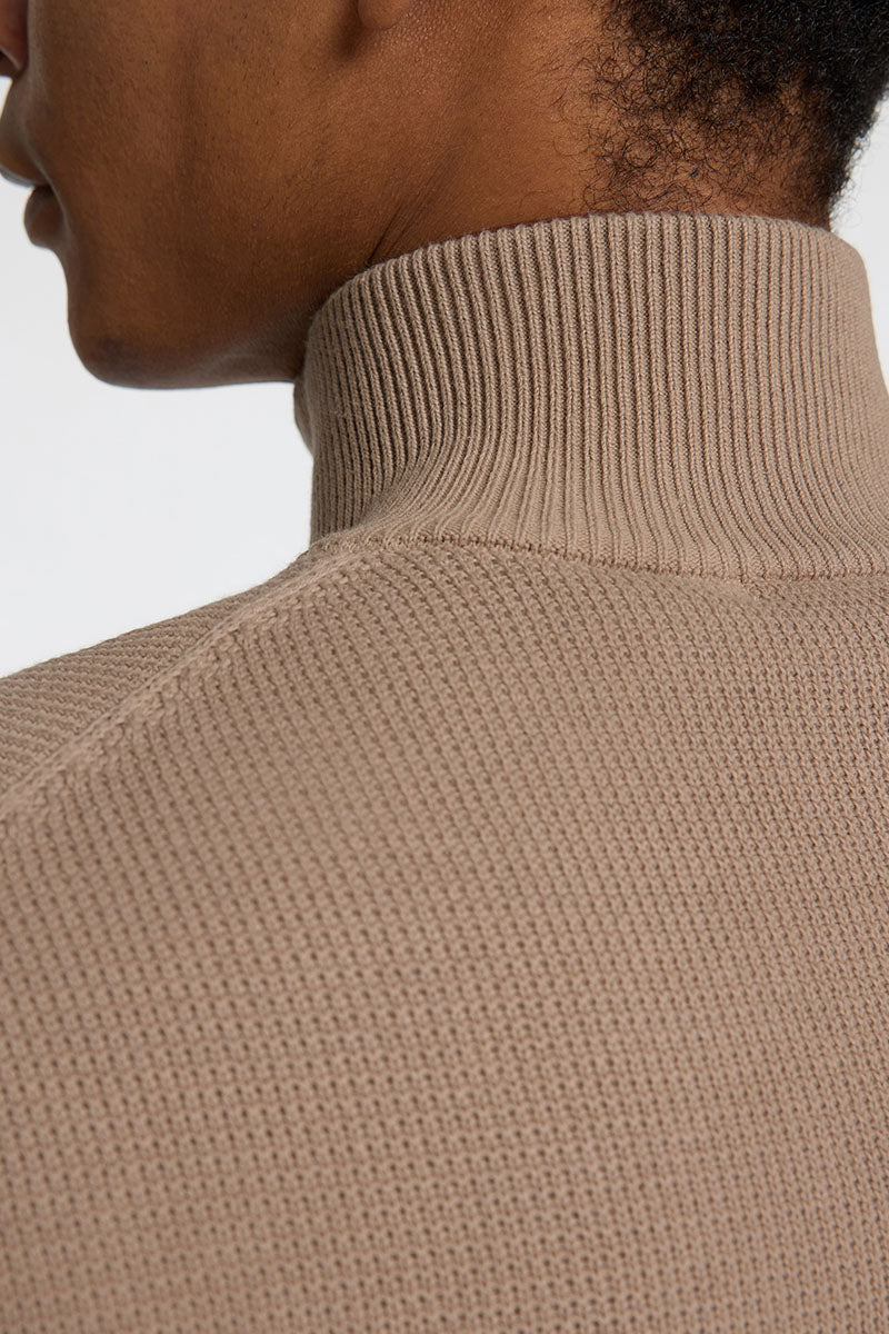 Dane LS Structure Knit Half Zip Greige