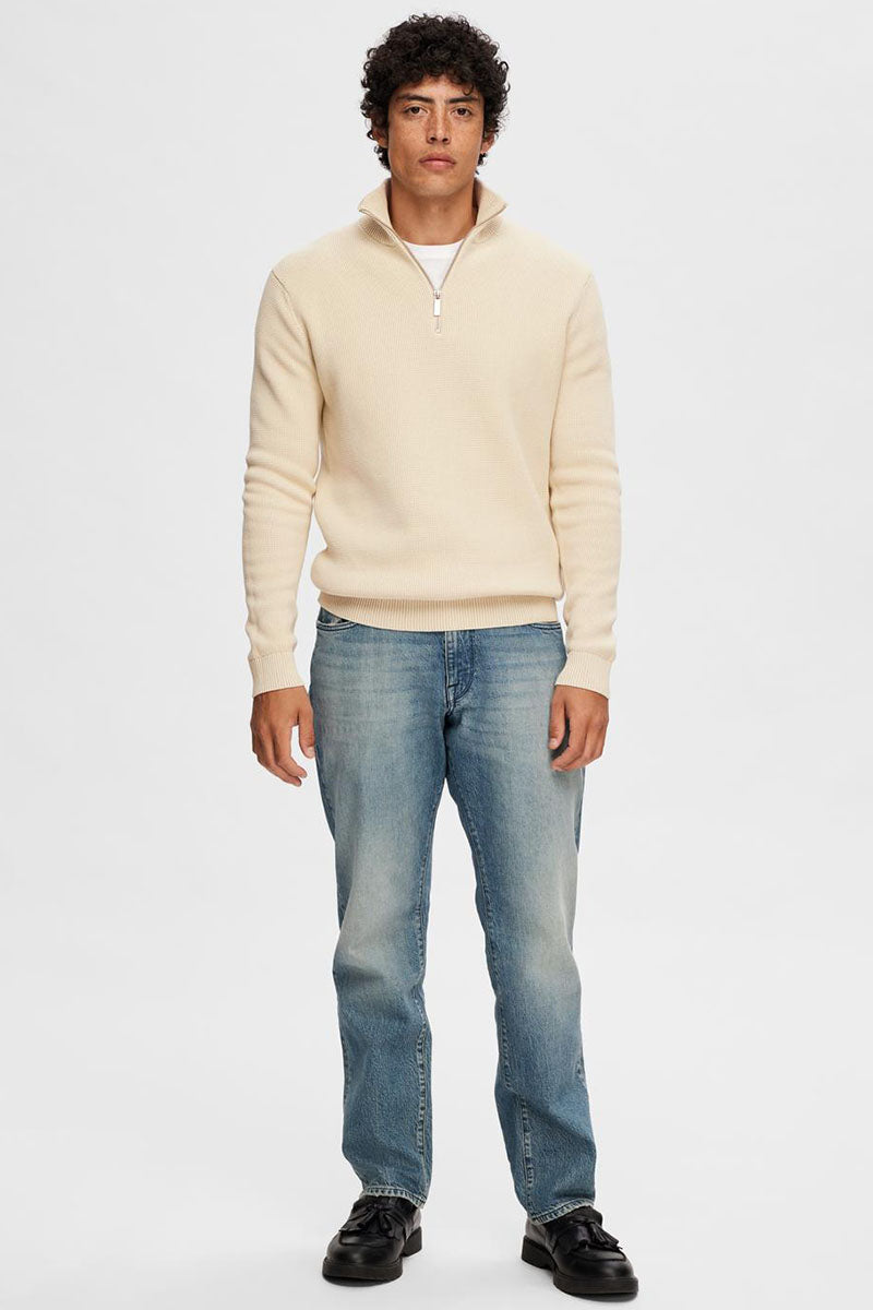 Dane LS Structure Knit Half Zip Oatmeal
