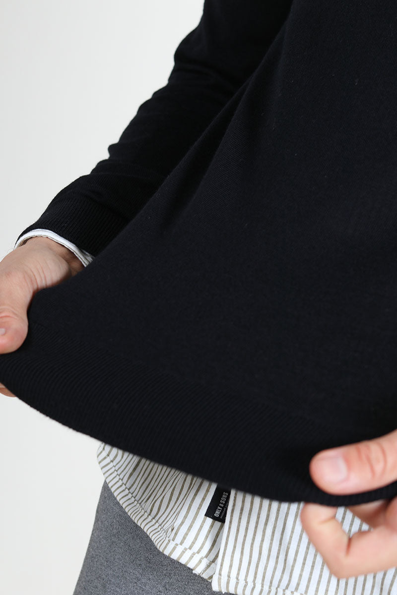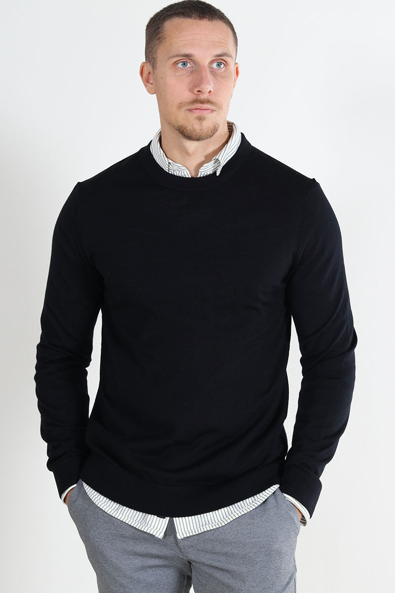Tray LS Merino Knit Crew Neck Black