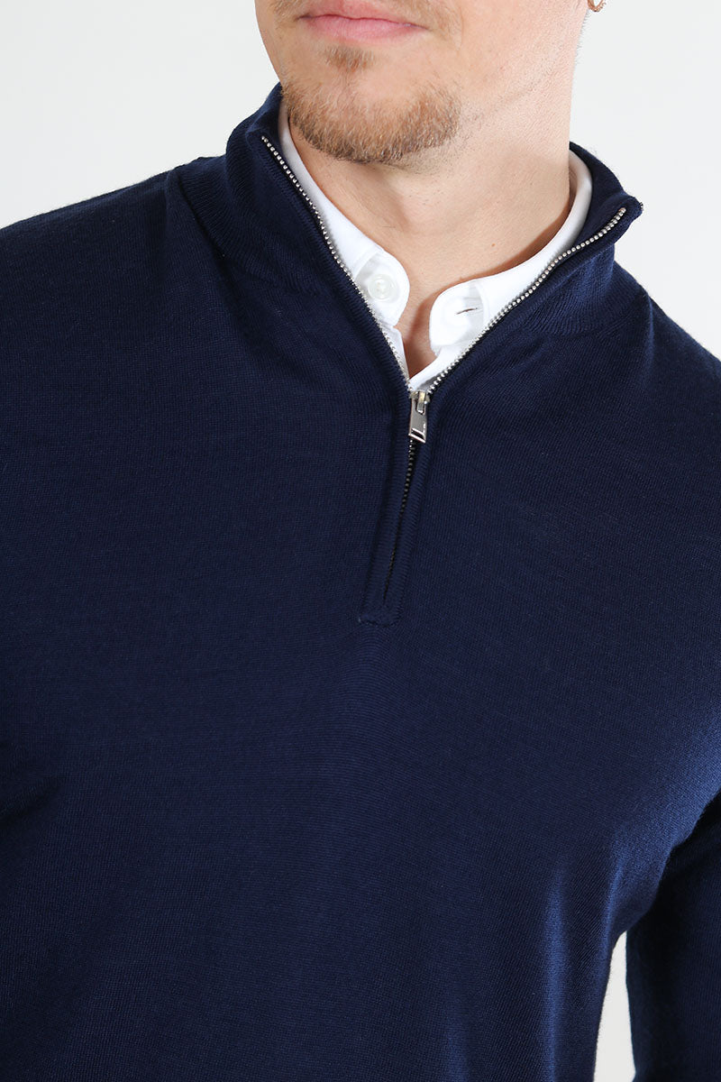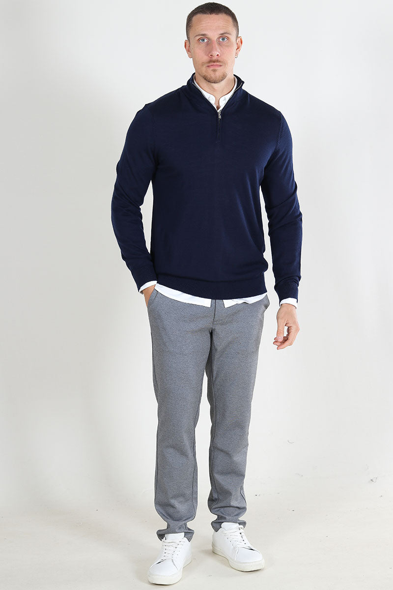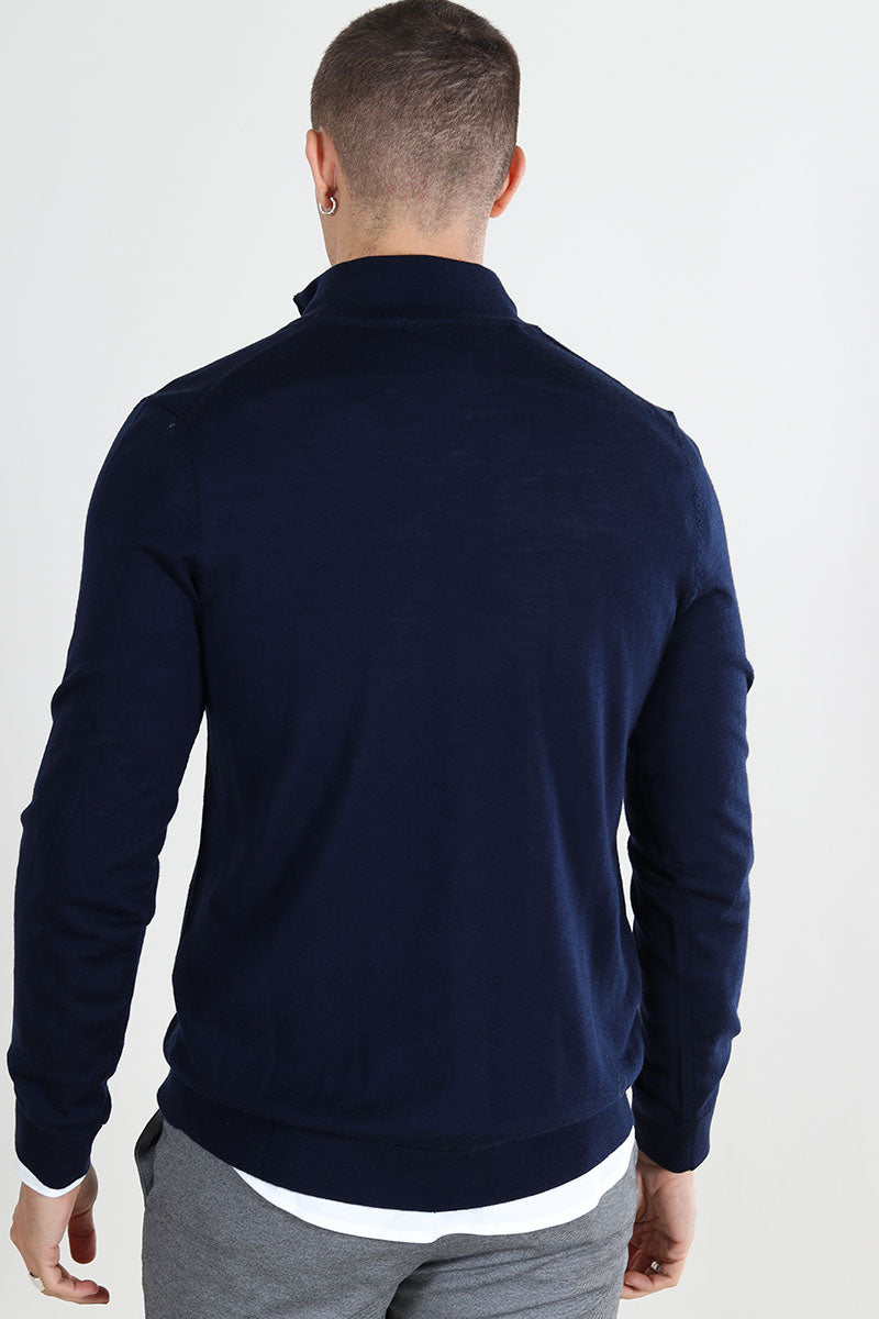 Tray LS Merino Knit Half Zip Navy Blazer