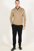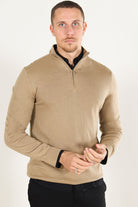 • Sweter z wysokim kołnierzem i półzamkiem.