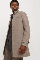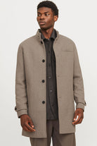 • Jednokolorowy płaszcz z wełny z dwiema skośnymi kieszeniami