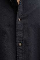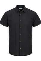 - Koszula lniana z krótkim rękawem i klasycznym kołnierzykiem.
