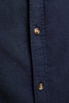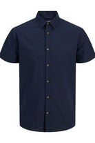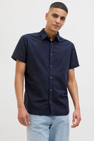 - Koszula lniana z krótkim rękawem i klasycznym kołnierzykiem.