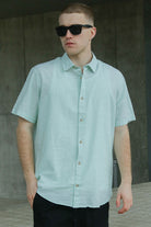 • Koszula lniana z krótkim rękawem i klasycznym kołnierzykiem.