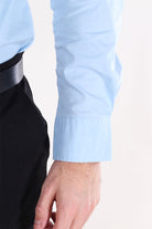 • Niebieska koszula z długim rękawem w kroju slim fit
