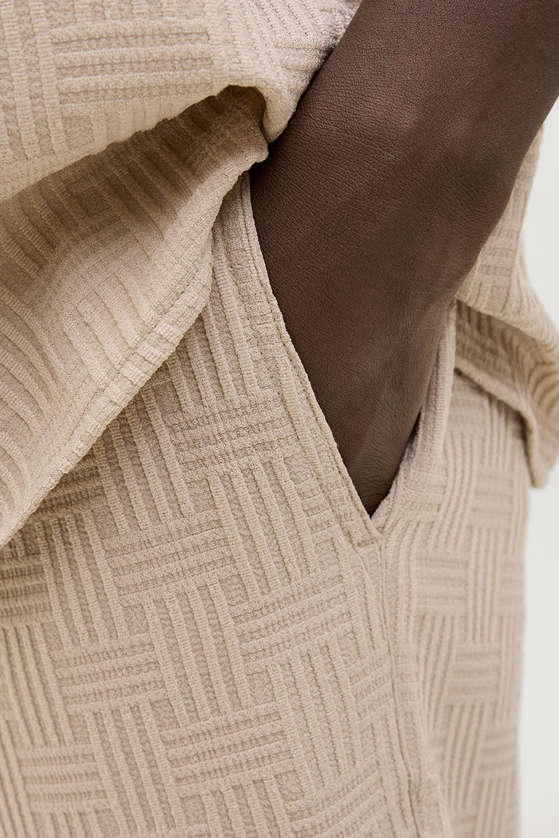- Posiadają sznurek i elastyczny pas oraz dwie przednie kieszenie