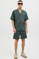 - Koszula z krótkim rękawem z geometrycznym wzorem i luźnym krojem