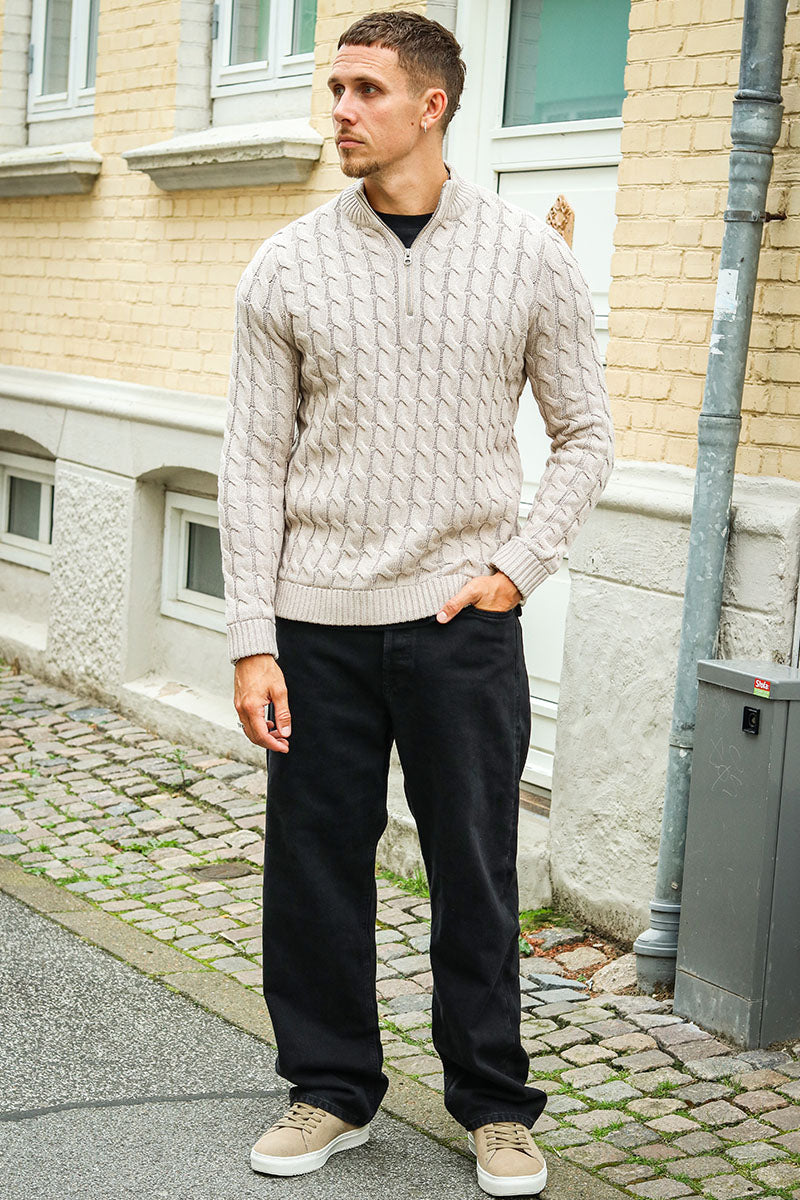 Kicker Cable Knit Half Zip Oatmeal