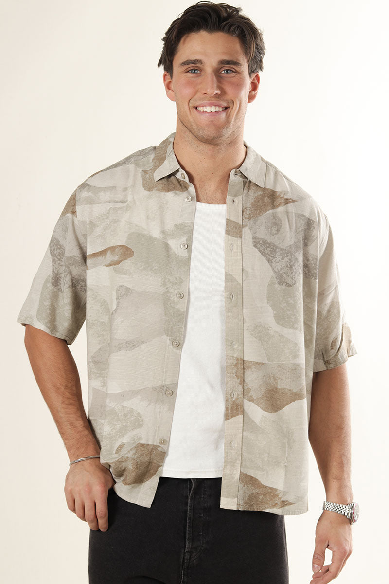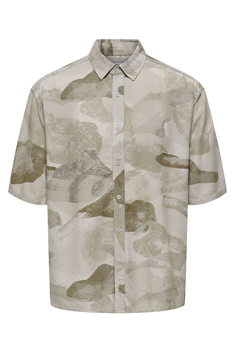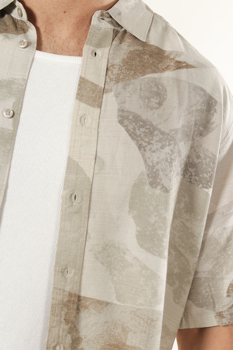 Bud Relaxed Fit AOP Linen Shirt Chinchilla