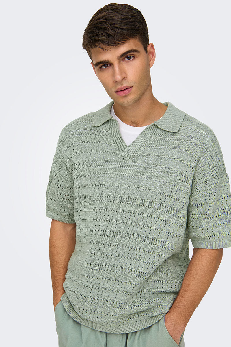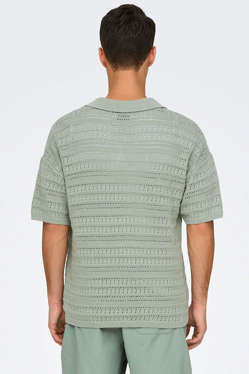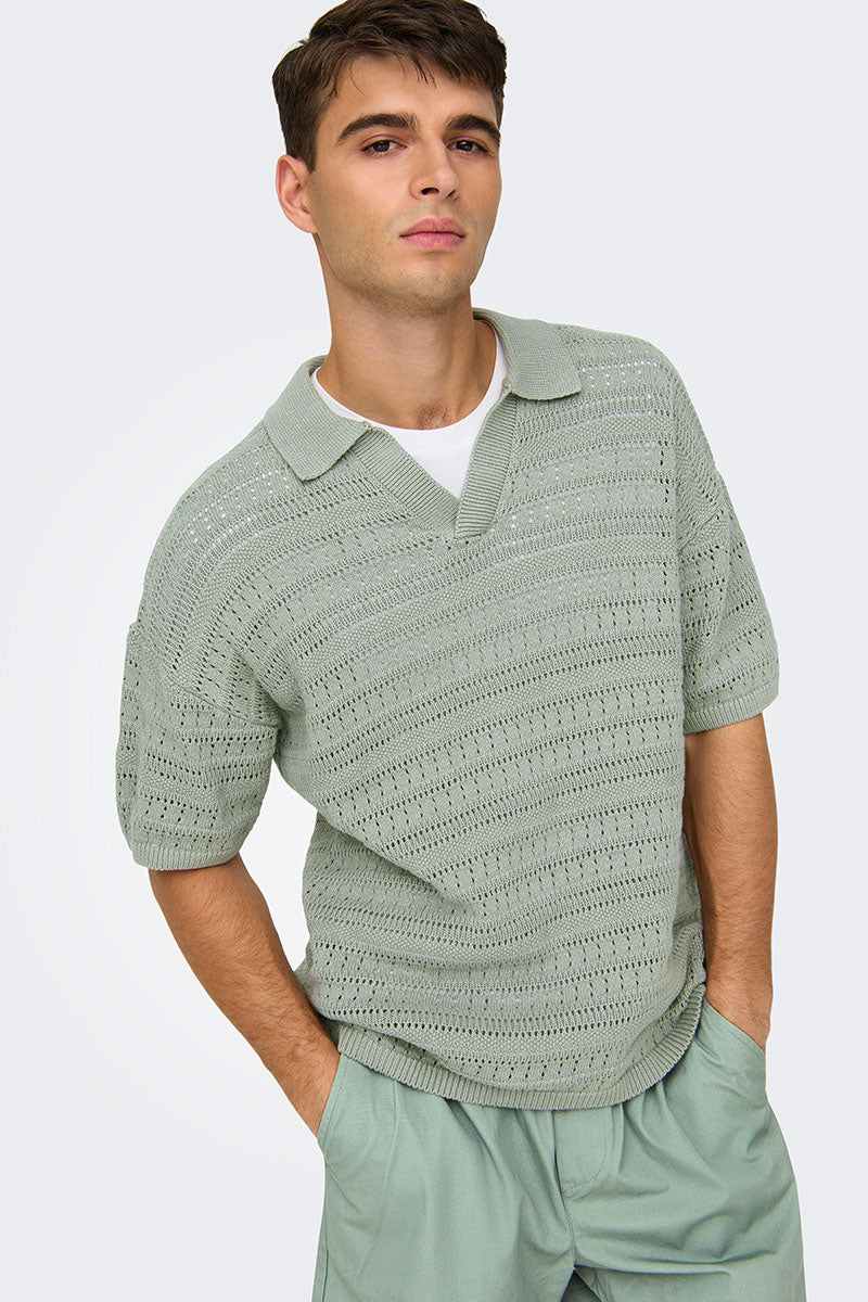 Grayson SS Chocket Knit Polo Wrought Iron