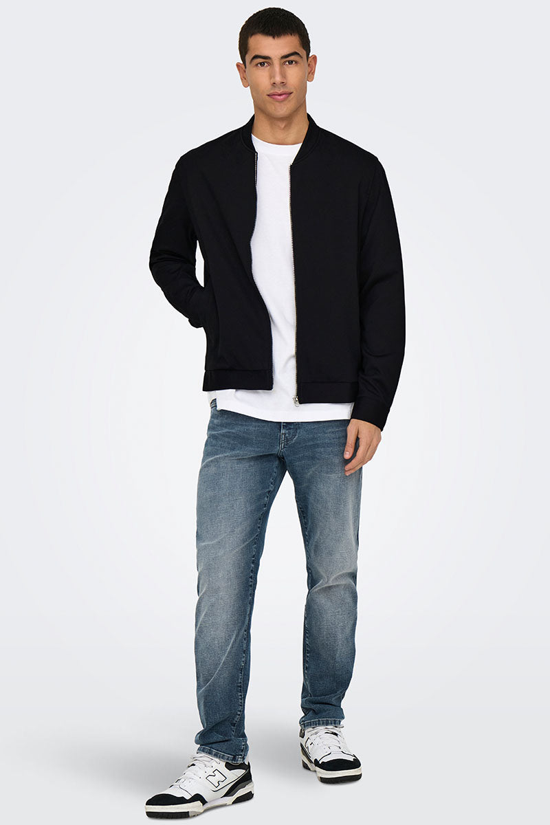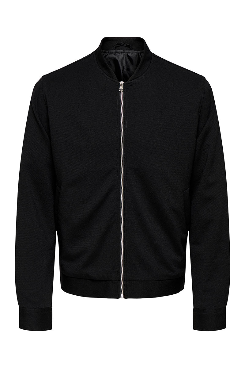- Czarna kurtka bomberka z zamkiem błyskawicznym.