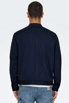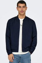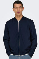• Granatowa kurtka bomberka z zamkiem błyskawicznym.