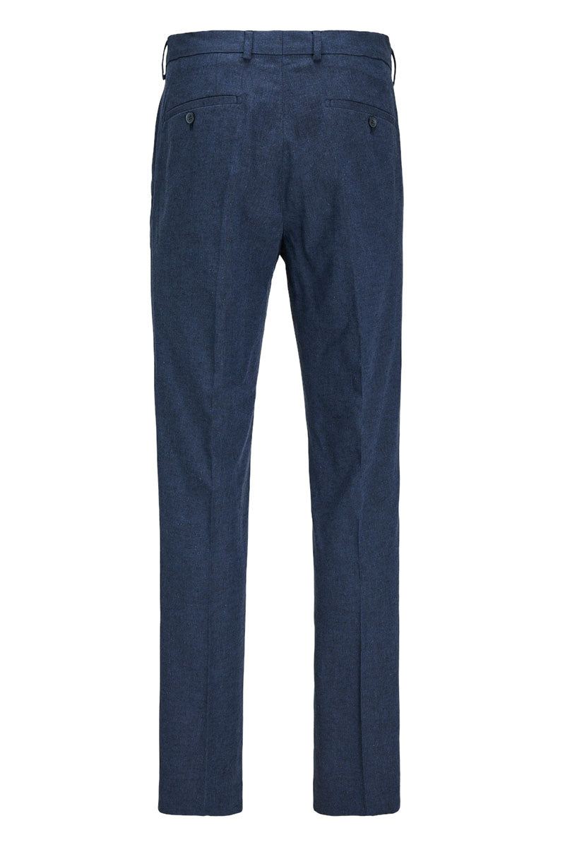 - Ciemnoniebieskie lniane chinosy o kroju slim fit