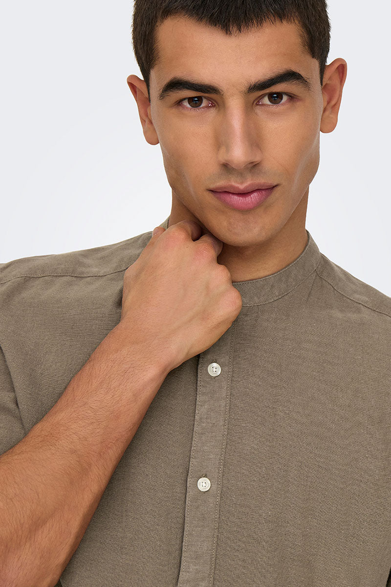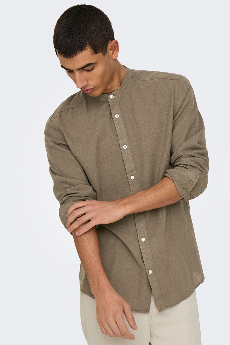Caiden LS Linen Mao Shirt Fossil