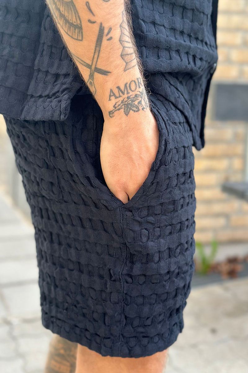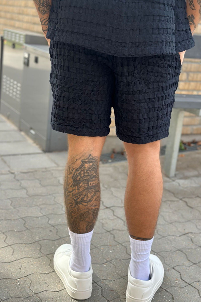 - Posiadają dwie kieszenie z przodu, jedną z tyłu oraz sznurek w pasie