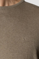 - Lekki dzianinowy sweter z okrągłym dekoltem i długimi rękawami.