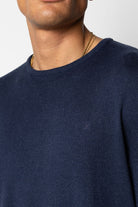 - Lekki dzianinowy sweter z okrągłym dekoltem i długimi rękawami.