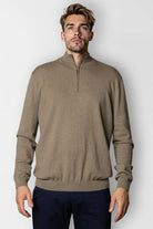 • Lekki dzianinowy sweter z wysokim kołnierzem i pół-zamkiem.