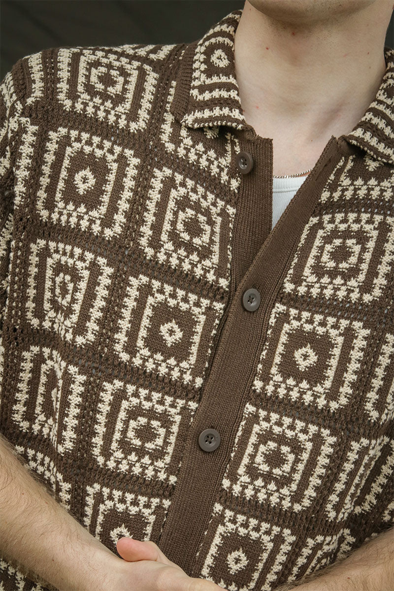 - Dzianinowa koszulka polo z krótkim rękawem i wzorem