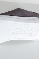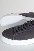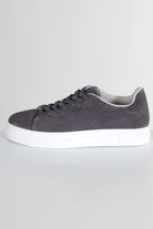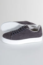 • Ciemnoszare buty zamszowe z gumową podeszwą.