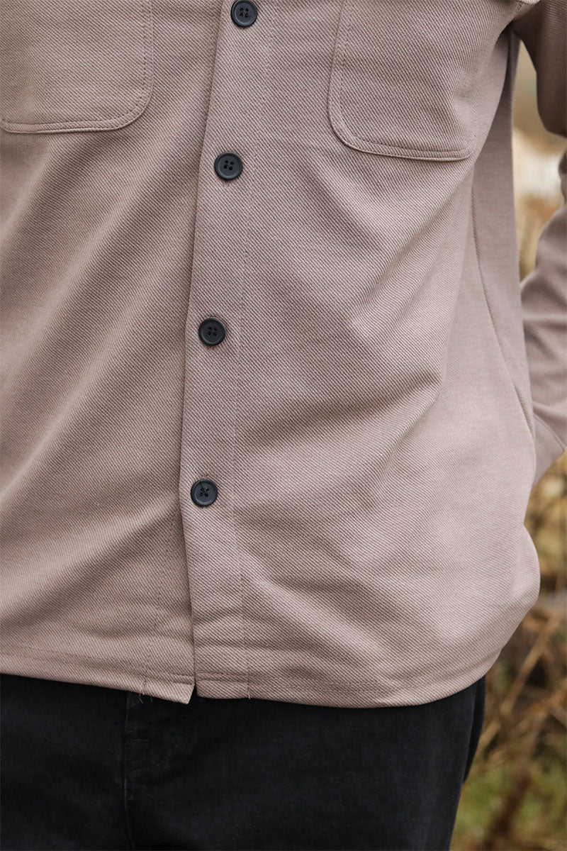 - Wyposażony w dwie kieszenie na piersi i zapięcie na guziki.