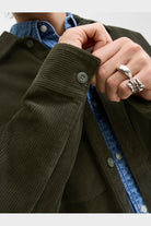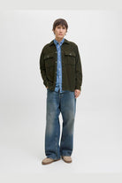 - Overshirt posiada klasyczny kołnierz, dwie kieszenie z przodu, zapięcie na guziki oraz guziki przy rękawach
