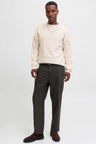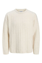 - Płasko dziany sweter z okrągłym dekoltem i długimi rękawami