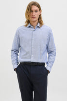 Parker Wrinkle Resistant Shirt LS Black Iris Stripe