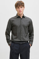 - Ciemnoszara koszula z długim rękawem w fasonie slim fit