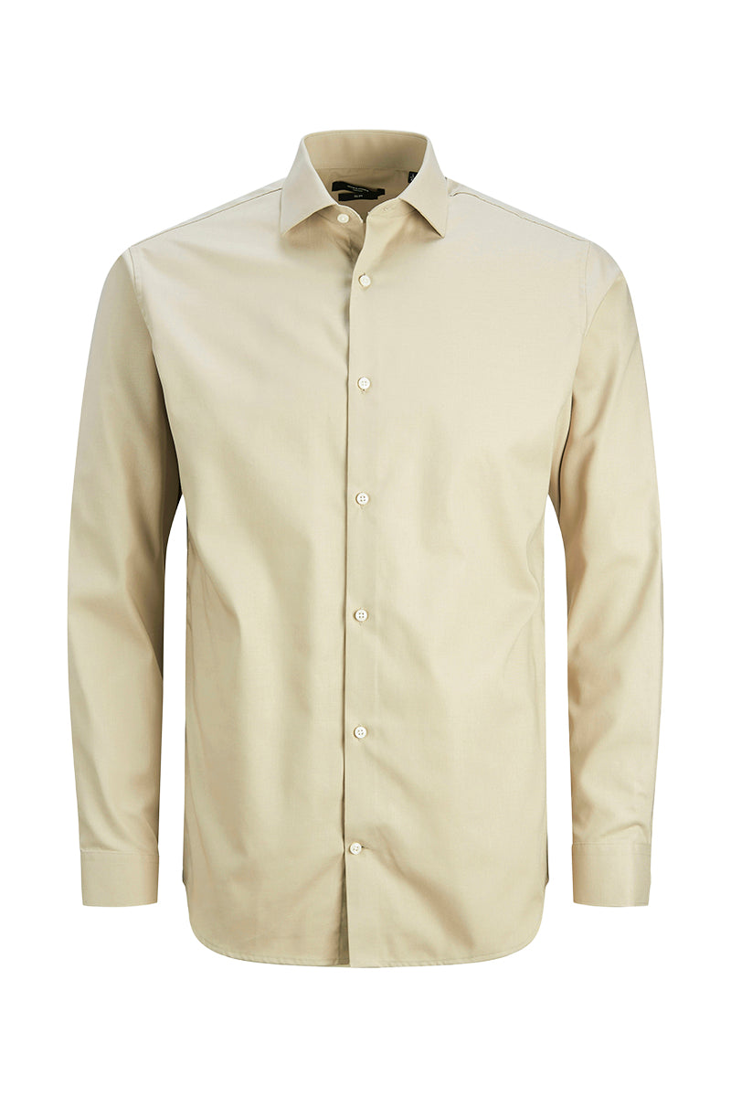- Beżowa koszula z długim rękawem w fasonie slim fit