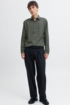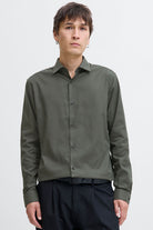 - Ciemnozielona koszula z długim rękawem w fasonie slim fit