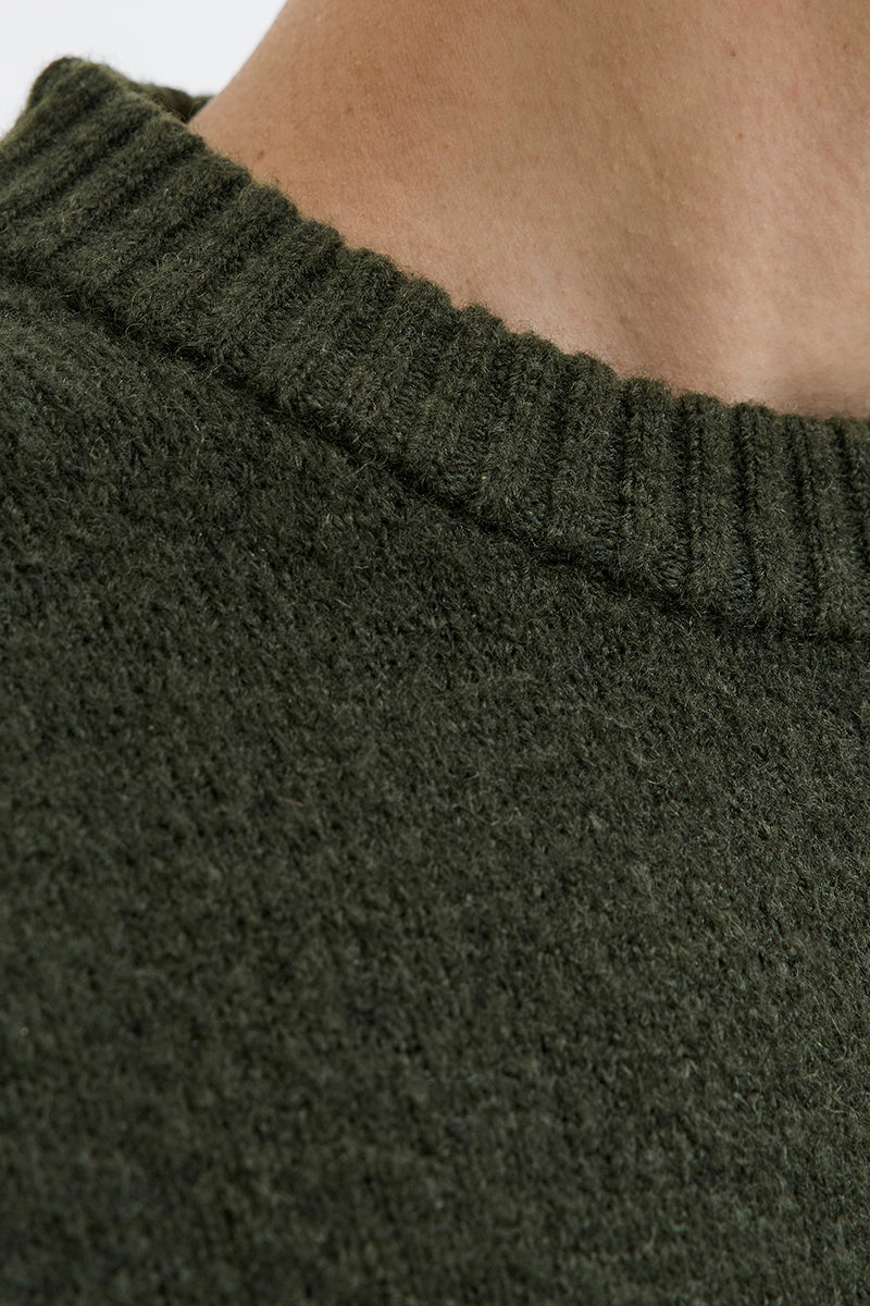 - Zielony sweter z długim rękawem