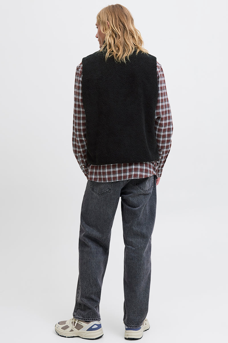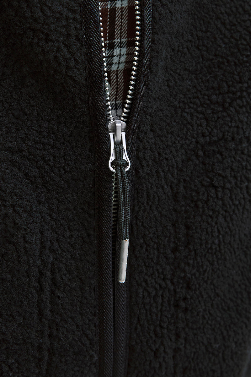 - Kamizelka ma wysoki kołnierz oraz zamki błyskawiczne z przodu i przy kieszeniach