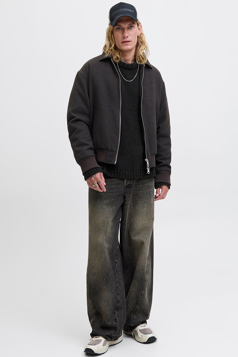 - Sweter ma okrągły dekolt, długie rękawy i grubą strukturę. Dodatkowo posiada ściągacze przy rękawach i w pasie.
