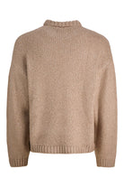 - Sweter ma okrągły dekolt, długie rękawy i grubą strukturę. Dodatkowo posiada ściągacze przy rękawach i w pasie.
