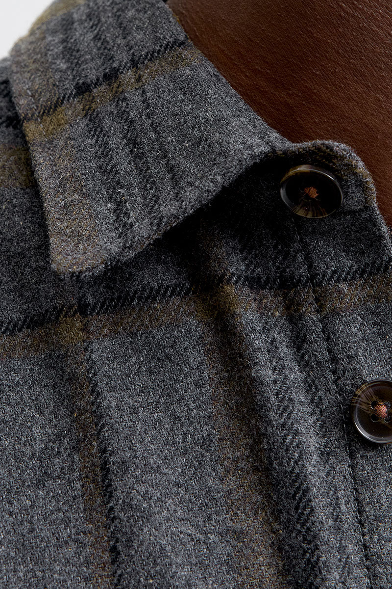 - Ciemnoszara kraciasta koszula overshirt z długim rękawem