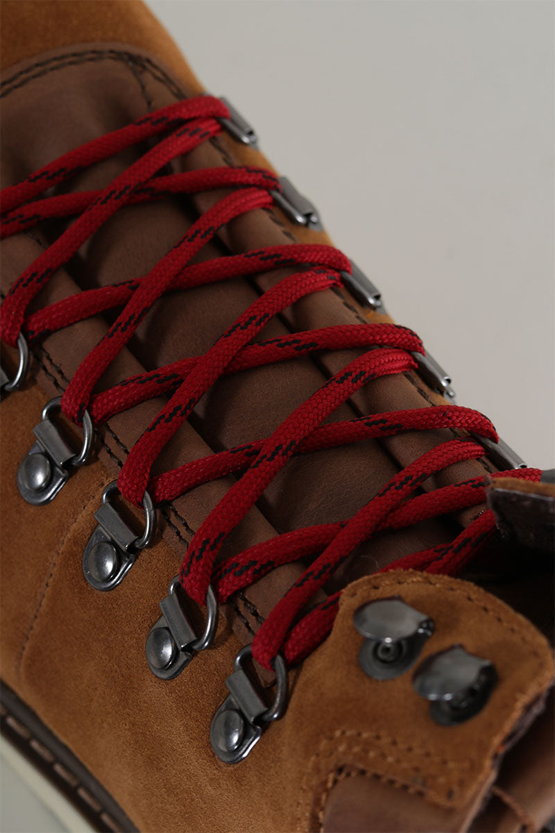 - Buty z wysoką cholewką z zamszu i zaokrąglonym noskiem