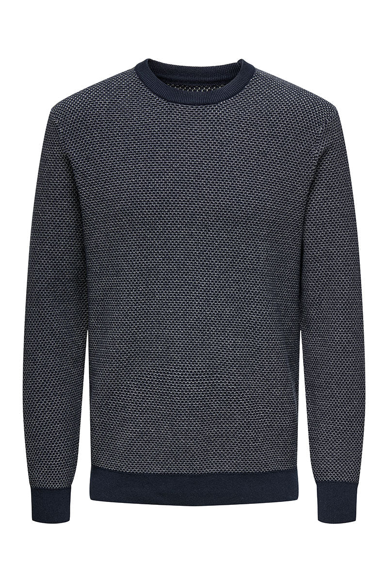 • Ciemnoniebieski sweter dzianinowy z wzorem i długim rękawem w kroju regular fit