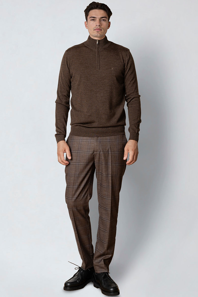 Merino Half Zip Brown Melangè