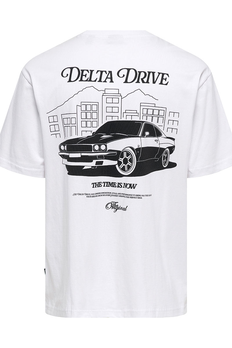 Nathan Backprint Relaxed Fit Tee Bright White Delta Drive