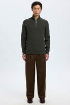 Dane LS Structure Knit Kalf Zip Deep Forest