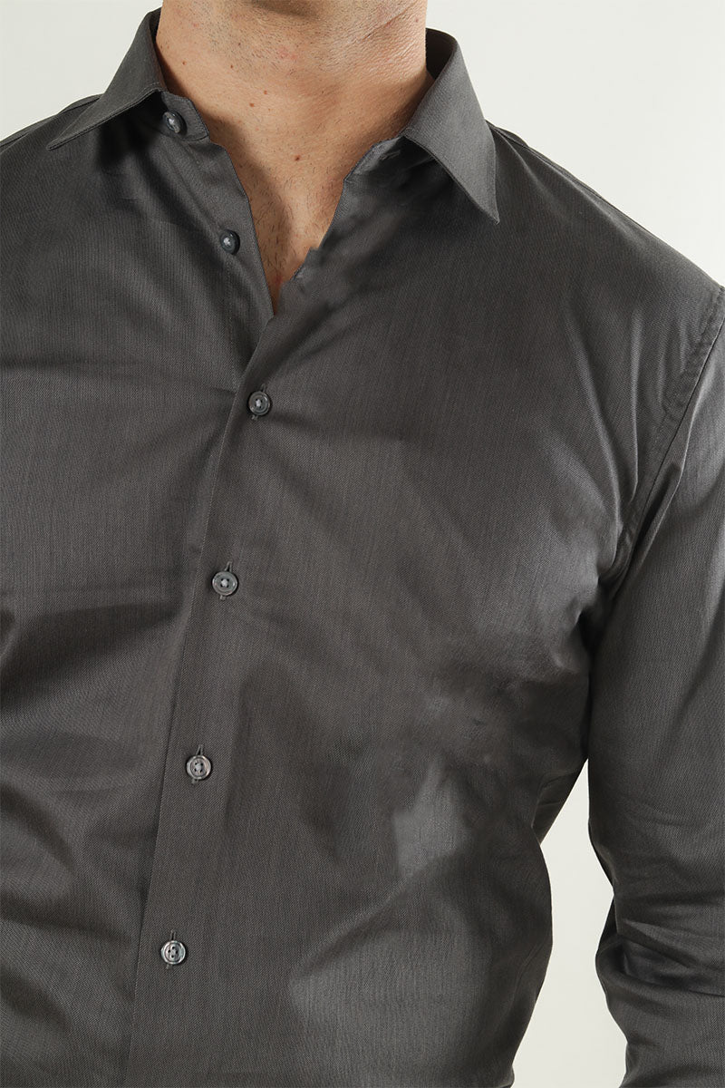 • Koszula z klasycznym kołnierzykiem, zaokrąglonym dołem i długimi rękawami z mankietami na guziki
