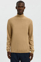 - Miękki sweter dzianinowy z golfem i długimi rękawami