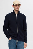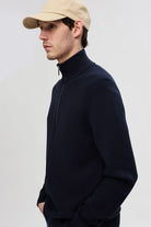 • Sweter z dzianiny z wysokim kołnierzem i pełnym zamkiem