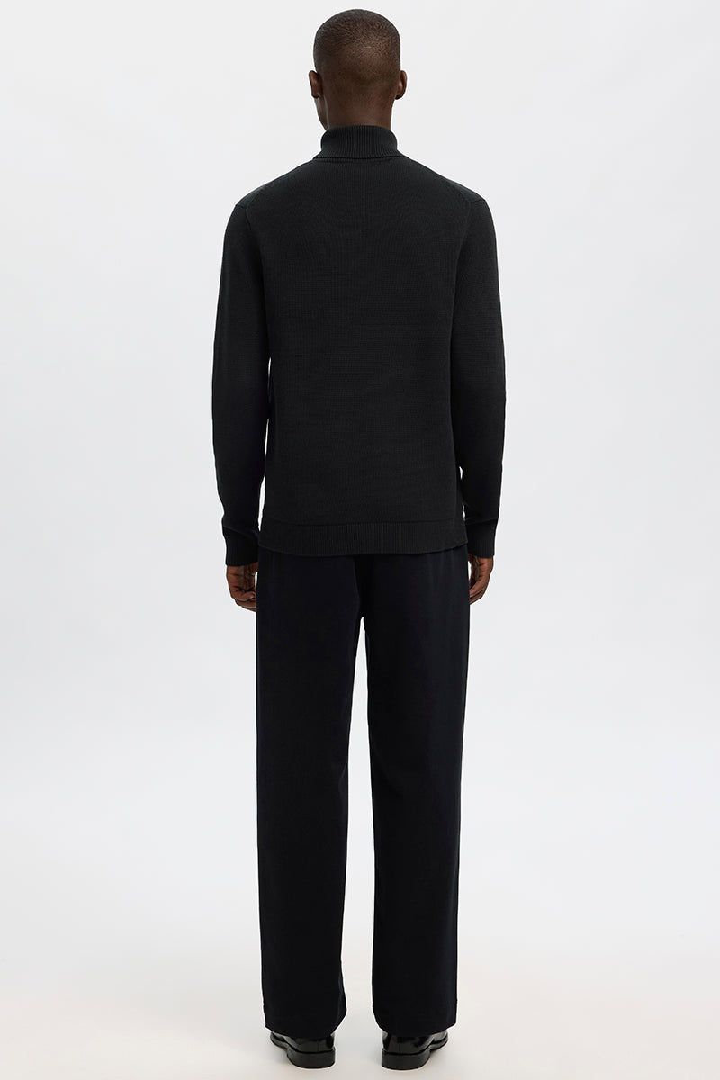 - Sweter ma ściągacze przy kołnierzu, rękawach i u dołu